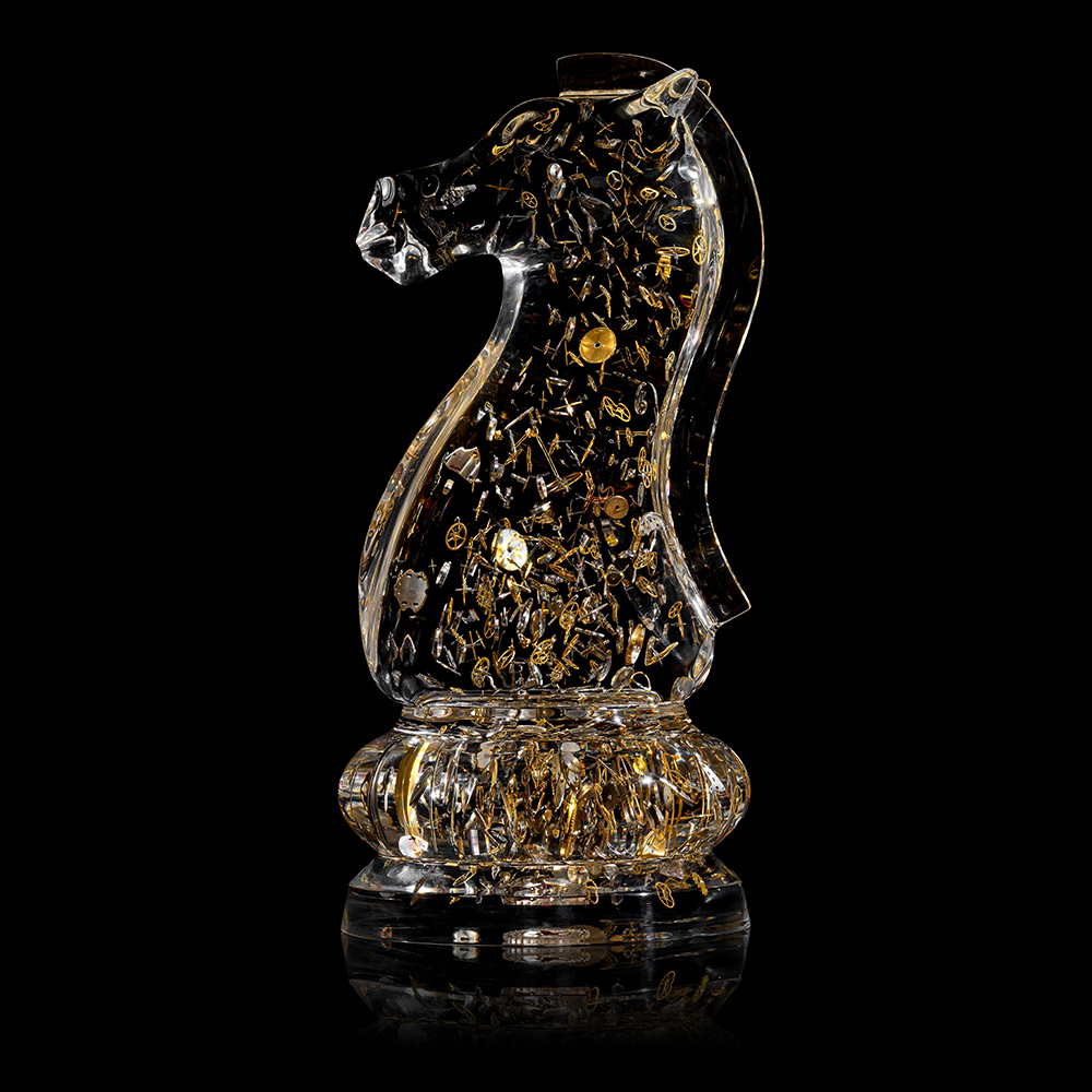 Masterminds in freezing time, Berd Vay’e offers an exclusive look into the secret inner-workings of watchmaking through its show-stopping, limited edition sculptures. Each and every gear, barrel, wheel, spring, escapement wheel, pinion, bridge, and hands is storied. Components are restored, polished and meticulously positioned, balanced in precious, crystal clear shatter-resistant Lucite®.